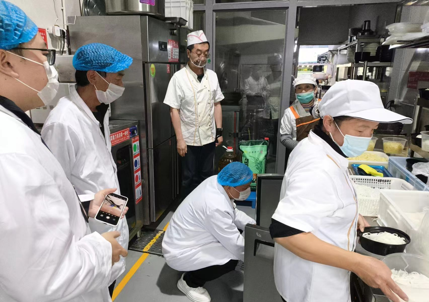 督查组一行深入安宁校区学生食堂,通过查阅台账、实地查看的方式,对各食堂的管理制度、承包商经营资质、“日管控、周排查、月调度”工作机制执行情况、原材料进货查验及索票索证、从业人员健康管理、食品留样、餐饮具清洗消毒、食品加工操作流程等情况进行了全面检查,对发现的问题及时进行了反馈并提出整改意见。