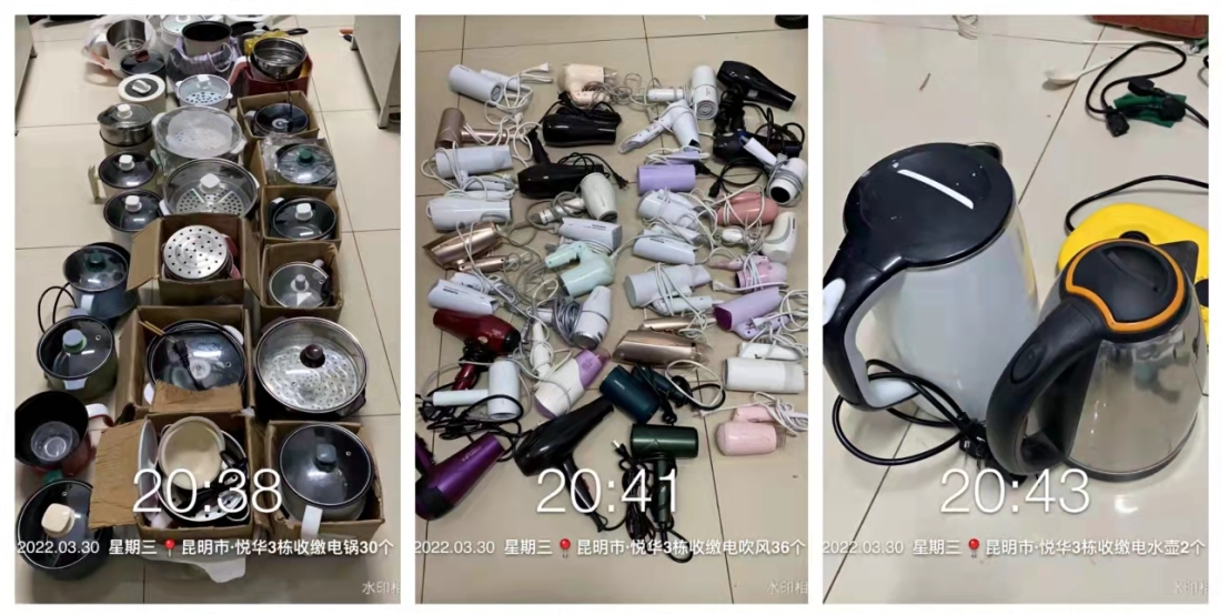检查后,大部分宿舍整体情况较好,少部分宿舍存在问题,主要现象是:地面不洁、桌面杂乱、书桌混乱、床铺杂乱,使用违禁物品等,在检查过程中也进行现场引导工作,提醒学生们积极落实学校相关宿舍管理办法,为了自身以及他人的安全,宿舍内严禁使用违规电器,自觉保持室内清洁,营造舒适的生活和学习环境。此次检查共计收到电吹风、电煮锅等250余件违规电器。
