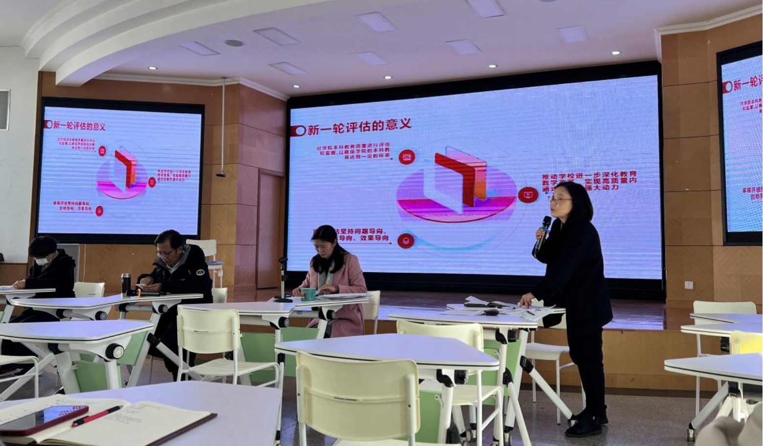 首先,张洪烈院长发表动员讲话,张俊婕副院长详细介绍了工作的重点。这次动员不仅仅是一次知识的灌输,更是一次激发教职工参与的动力。大会重点围绕新一轮审核评估的政策依据、评估指标等进行深入解读,阐述了这一轮审核评估的意义与特点,以及学院在自评自建工作中的关键要点。在动员过程中,参会教职工在认真学习的同时,对新一轮审核评估中需要关注的事项表现出高度的关注和重视,也形成了集体共识。会中的学习氛围紧张而充实,每位教职工都对自身的工作有了更加清晰的认知,为投入到接下来的审核评估工作中提供了更为明确的方向。