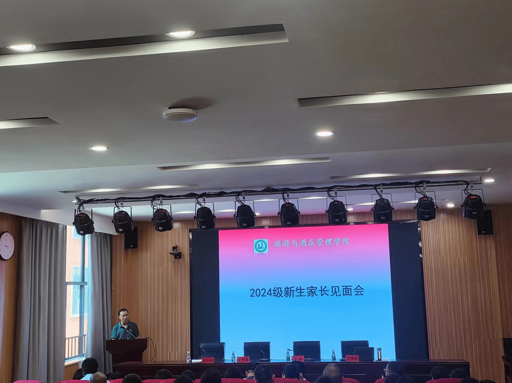 为促进新生家长对学校和学院的深入了解,强化家校共育理念,实现家校良性互动,8月24日下午,旅游与酒店管理学院在齐远楼报告厅举行2024级新生家长见面会。学院院长晏雄,副院长李雪松、王智慧,学院全体辅导员及50余名新生家长参加座谈,会议由学院党委副书记李永祥主持。