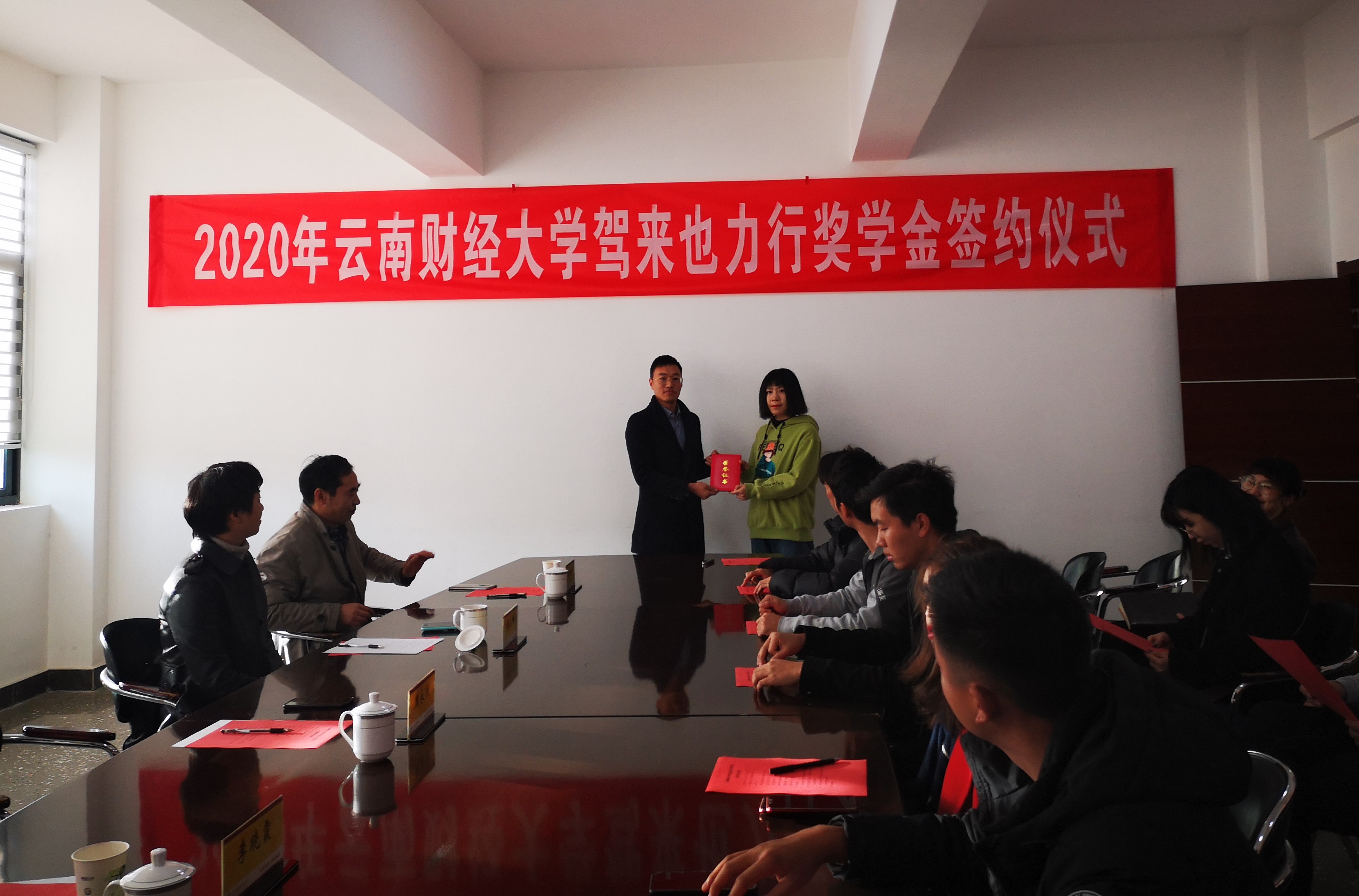 2020年1月3日上午9点,“驾来也力行奖学金”签约仪式在北院卓远楼507会议室举行。“驾来也力行奖学金”的出资方代表云南驾来也驾驶培训有限公司总经理周永川,校友工作办公室主任胡小珊,党委宣传部副部长李晓霞,学生处副处长杨世兵,校团委书记曾蕾、副书记李昀璟、舒挺,以及驾来也公司骨干成员,各学院团委负责人参加仪式。