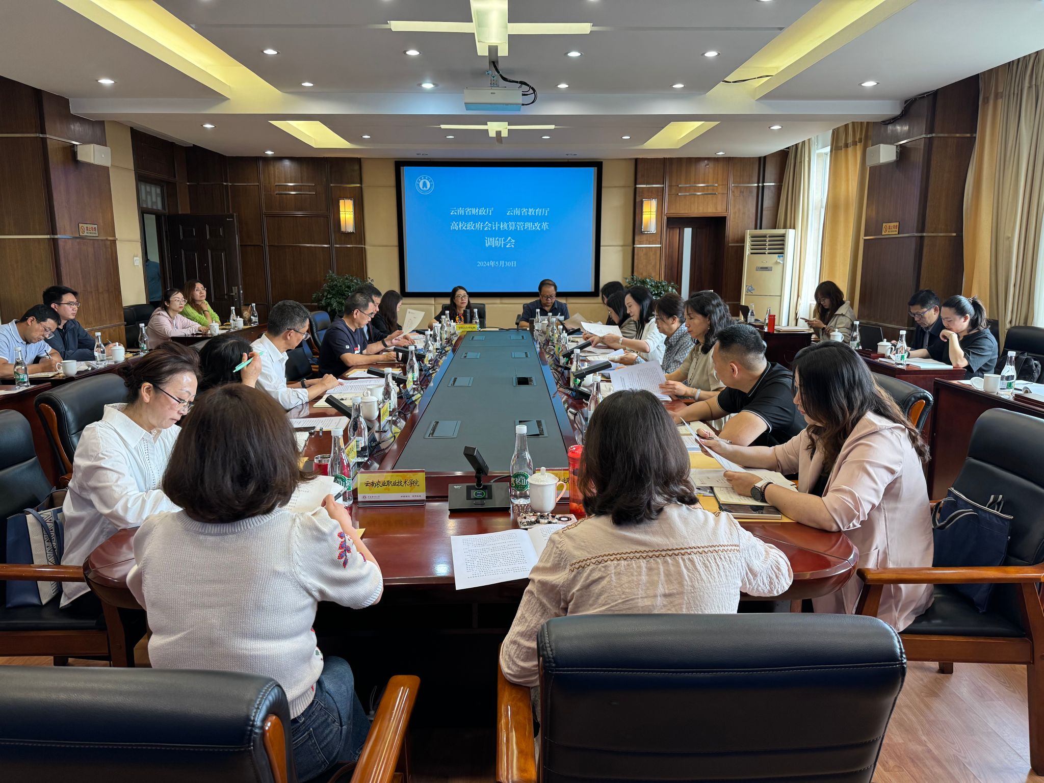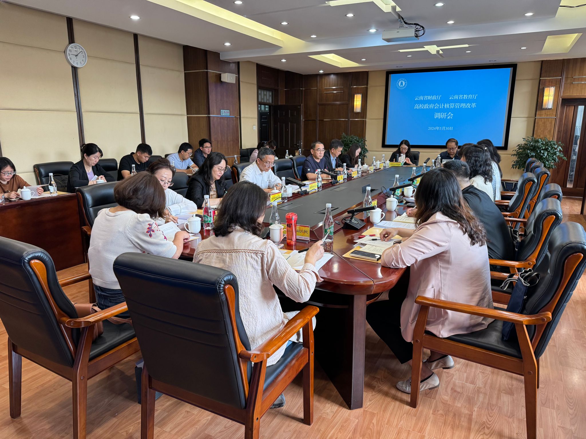 为加快推进高校政府会计核算管理改革,保障省教育厅所属高校推进使用统一的云南省预算单位会计核算系统,2024年5月30日,省财政厅国库处、科教文化处、财政数据网络中心和省教育厅财务基建处到学校开展高校会计核算管理改革调研。学校党委委员、副校长胡海彦出席,省教育厅财务基建处处长杨玲主持会议。
