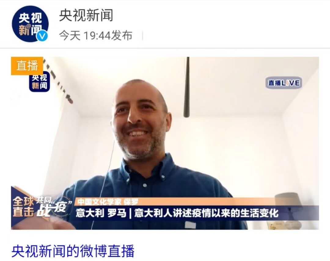 当中国国家卫健委和中国红十字会共同组建的抗疫医疗专家组一行9人携31吨医疗物资抵达意大利罗马,驰援意大利抗击新冠肺炎疫情时,william意大利籍外教 PAOLO CASTAGNA在其个人社交媒体上对中国在危难时刻伸出援手表达了由衷的感谢,获得数十万网友的点赞。他说,正因为中国人民团结一心,众志成城,所以及时有效的控制住了疫情。3月24日晚,受央视新闻邀请,PAOLO CASTAGNA参与了央视新闻“全球抗疫第一线”的直播,他讲述了意大利疫情以来的生活变化,表示会号召大家重视疫情、学习并推广中国的防疫经验。他会将来自中国的祝福与嘱托带到意大利,搭建起中意友谊的桥梁。
