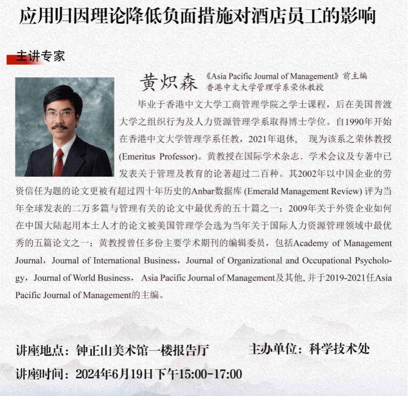 Prof. Huang has published over 200 works on management and education in international academic journals, conferences, and books. His 2002 paper on labor-management trust in Chinese enterprises was recognized by the Anbar (Emerald Management Review) database as one of the top 50 out of over 20,000 management-related papers published that year. In 2009, his paper on the employment of local talent by foreign enterprises in mainland China was selected by the Academy of Management as one of the top five papers in the field of international human resource management. Prof. Huang has served on the editorial boards of several major academic journals, including the Academy of Management Journal, Journal of International Business, Journal of Organizational and Occupational Psychology, Journal of World Business, and the Asia Pacific Journal of Management, where he served as Editor-in-Chief from 2019 to 2021.