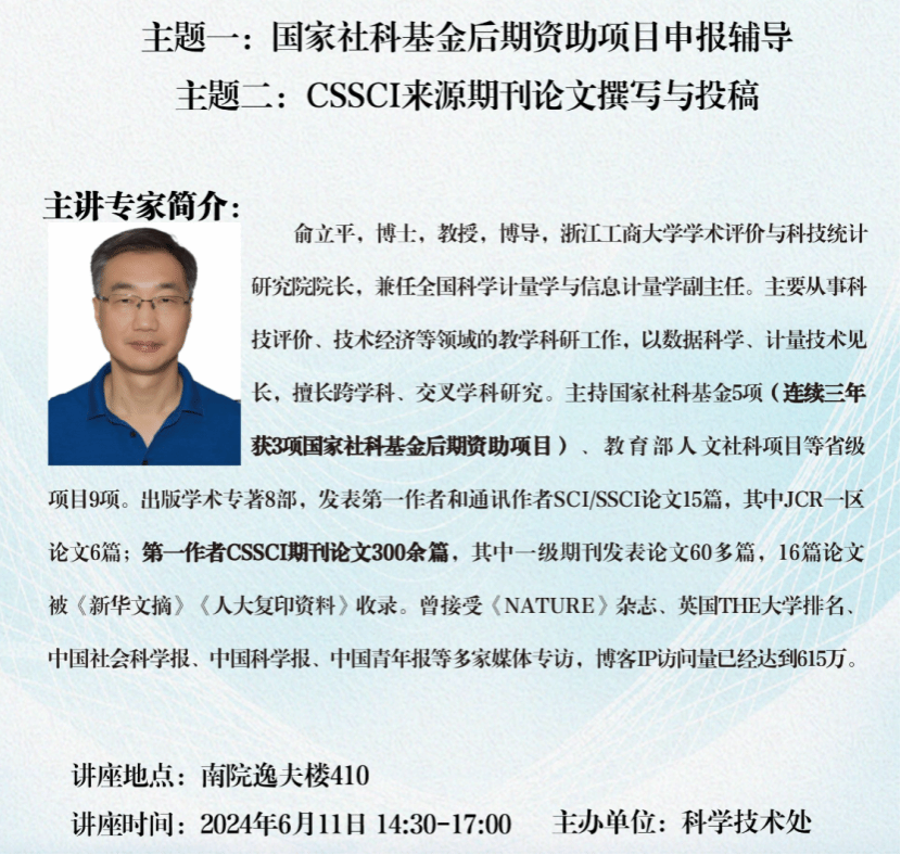 Topic 1: Guidance on Applying for Post-Funded Projects of the National Social Science Fund.Topic 2: Writing and Submitting Papers to CSSCI Source Journals
