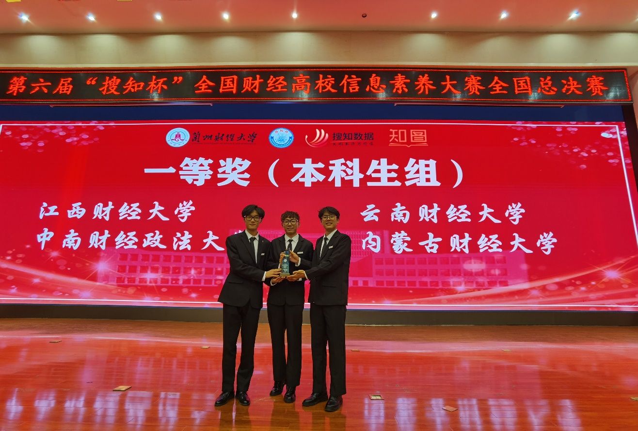 On May 25-26, the national finals of the sixth Souzhi Cup National Information Literacy Competition for Financial and Economic Universities were held at Lanzhou University of Finance and Economics. A total of 38 financial and economic universities nationwide sent 38 undergraduate teams and 21 graduate teams to participate in the competition. After competing in three stagesreport writing and PPT production, online answering, and presentationYUFEs Dianfeng Team, composed of students Shi Qi from the School of Information, Rao Tiancheng from the School of Finance and Public Administration, and Yuan Shuai, won the first prize in the undergraduate group of the national finals. The Xiangyunduan Team, consisting of students Zu Rong and Yang Huimin from the School of Accounting and Pang Jian from the School of Media and Design Arts, won the excellent award in the graduate group of the national finals.