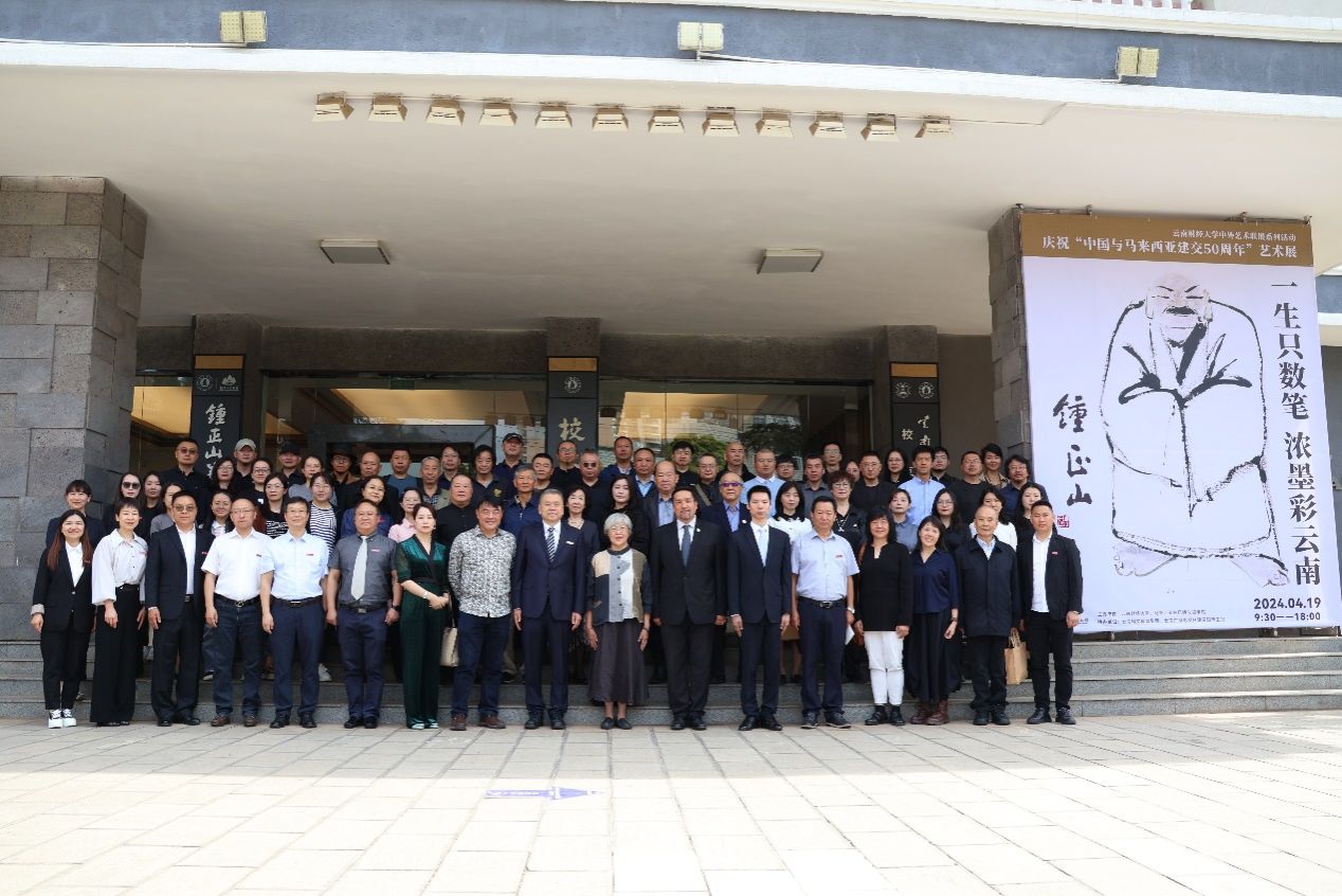 On April 19, commemorating the 50th anniversary of the establishment of diplomatic relations between China and Malaysia, Yunnan University of Finance and Economics (YUFE) and the Consulate General of Malaysia in Kunming co-hosted the “A Lifetime in a Few Strokes: The Vibrant Yunnan of Zhong Zhengshan” memorial event at the Zhong Zhengshan Art Museum, with support from Yunnan Media Group Lancang-Mekong International Satellite TV and Yunnan Hanwen Education Group.