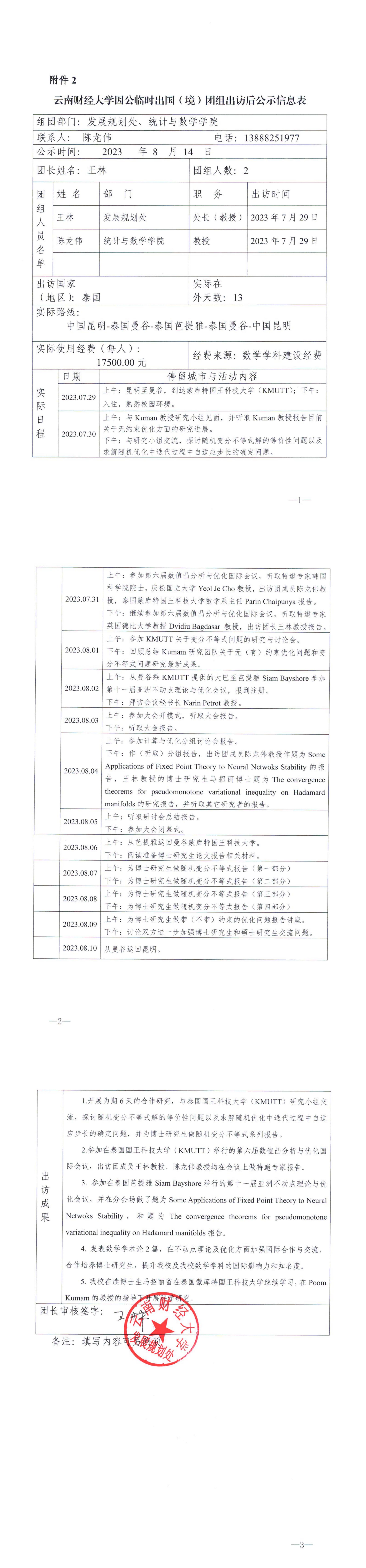 公示期为2023年8月14日至8月22日。如有异议,请与发展规划处联系,并提供必要的证据材料,以便核实查证。