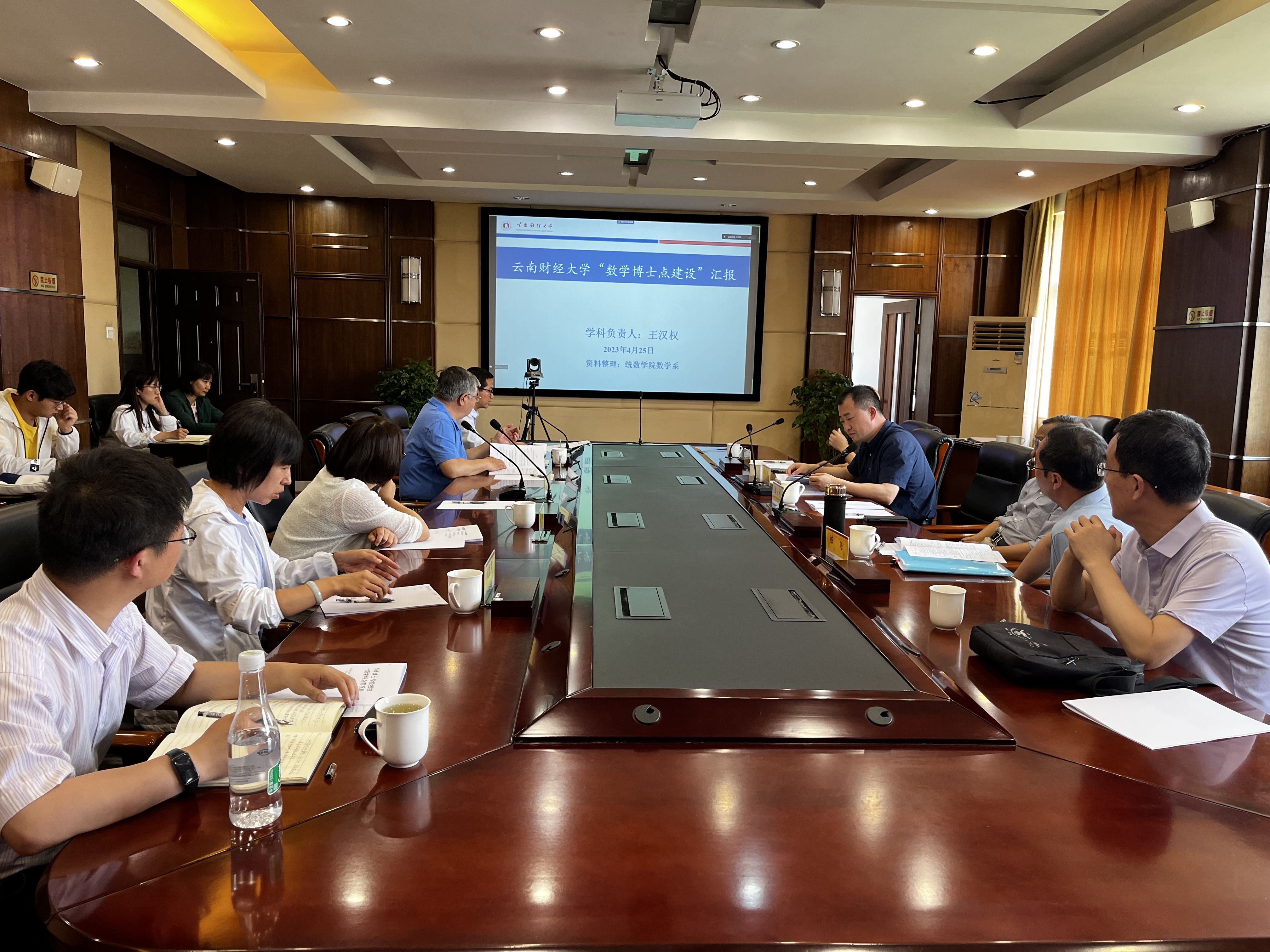 长江学者石磊、发展规划处处长王林、副处长刘羿良,统计与数学学院院长陈飞、副院长张宇以及数学学科团队成员参会。