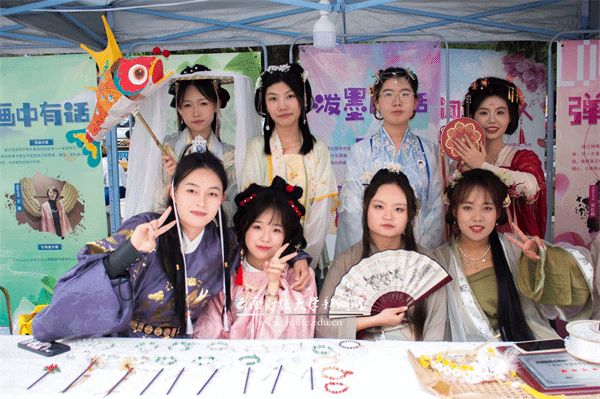 在“聚拢来是烟火 摊开来是人间”集市上,29个汇集非遗传承作品、学生文创作品、传统香道与心理健康、留学生异国服饰和手工艺品展示、特色农产品展销、特色美食等项目的摊点为师生们带来了同赶“云彩街(gai)子天”的精彩体验。其中,学生处心理教育与咨询中心在摊位将传统香道、汉服文化与心理健康相结合,让学生在感受传统文化的过程中提升心理健康素养;资助中心向阳工作站摊点将剪纸艺术带到现场,让同学们学习和感受优秀传统文化的魅力;传媒与设计艺术学院退休教师武斌的铁艺工作坊摊点向同学们展示了用废铁制作成的各种精美工艺品;传媒与设计艺术学院学生自主创业项目展示了以学校70周年校庆为主题的各类文创产品;昆明市特色农产品行业协会的13个摊点在展销云南各地特色农产品的同时,启发同学们思考如何发挥财经类专业优势更好地服务乡村振兴战略;国际学生摊点展示了部分非洲和东南亚国家的服饰、手工艺品,吸引了众多中国学生驻足交流……传媒与设计艺术学院还在活动现场展示了2024届学生毕业作品电子展览。