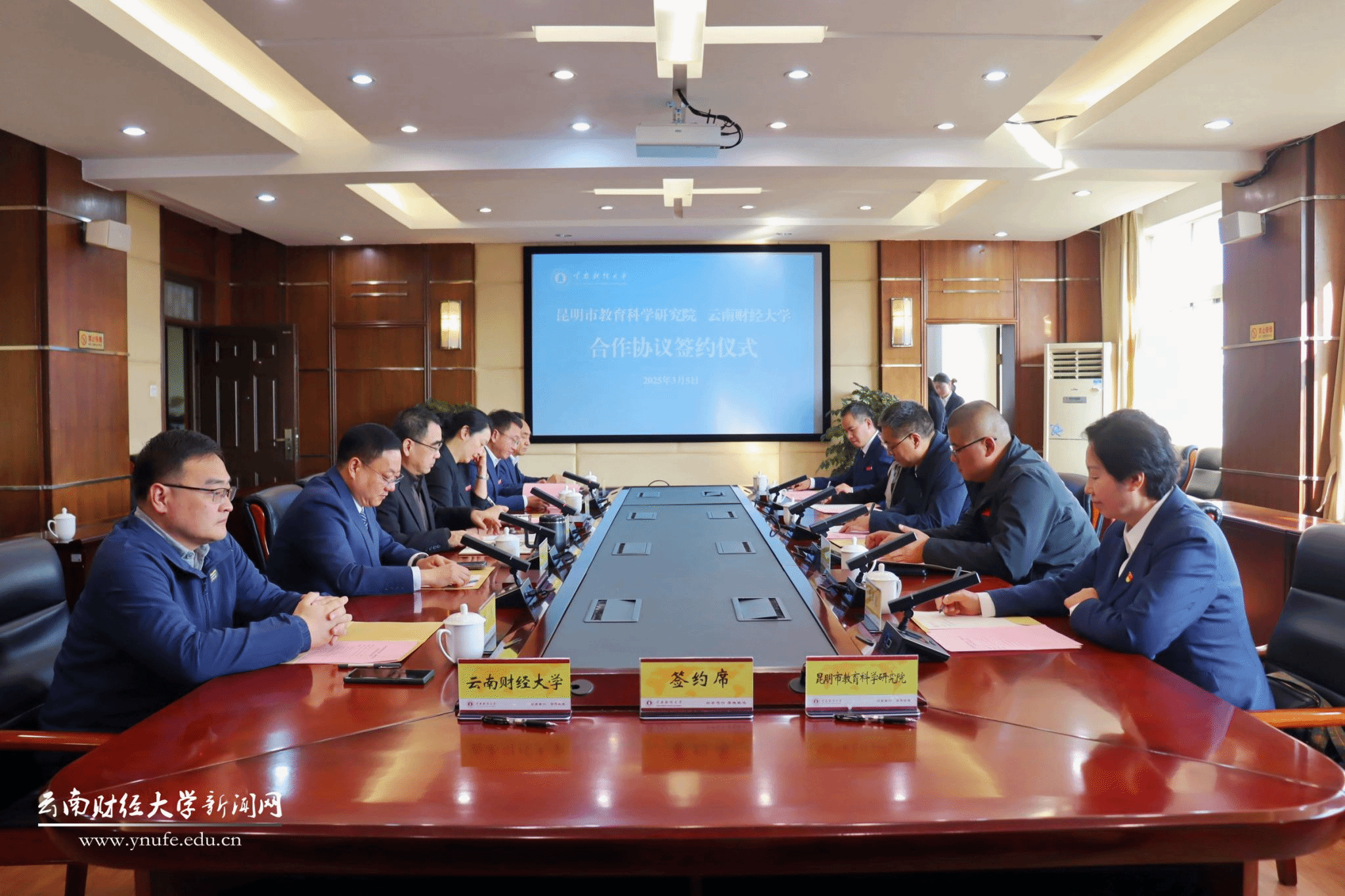 为充分调动和发挥双方优势,推动昆明市基础教育教学的改革创新,3月5日,昆明市教育科学研究院与william威廉中文官网在william威廉中文官网致远楼506会议室举行合作签约仪式。william威廉中文官网校党委委员、副校长胡海彦出席并致辞,昆明市教育科学研究院副院长路小军与william威廉中文官网教育研究院院长王学先代表双方签署合作协议。