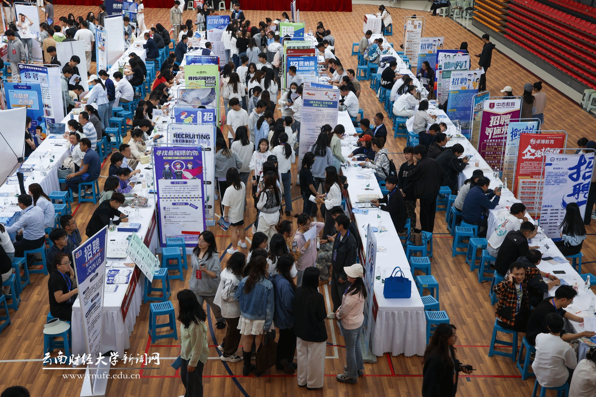 双选会吸引了云南云内动力集团有限公司、中国人民财产保险股份有限公司云南省分公司、中华联合财产保险股份有限公司云南分公司 、招商局物业管理有限公司昆明分公司等153家用人单位到校招聘,其中央国企单位8家、事业单位5家、优质民营企业140家,涵盖多个行业领域。