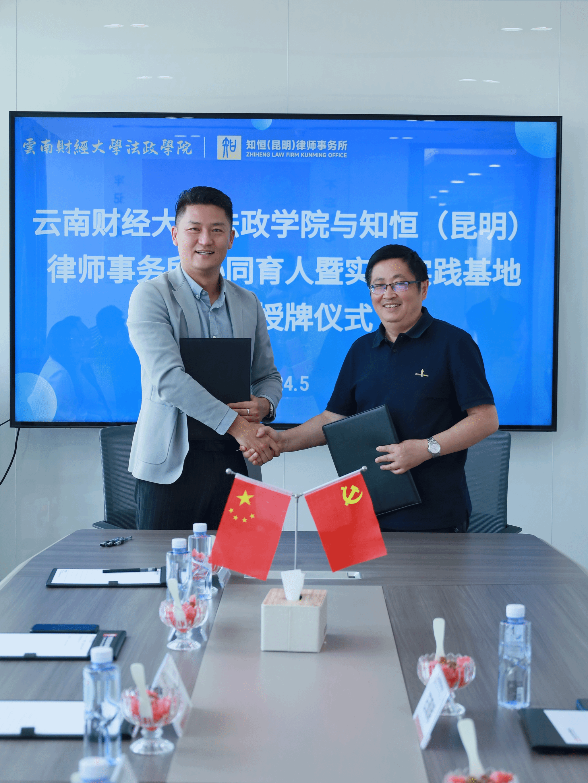 为深化法学专业教育教学改革,提高法律人才培养质量,促进学生实习与就业渠道的开拓,5月23日法政学院院长石现明、党委副书记兼纪委书记张吟竹到知恒(昆明)律师事务所开展访企拓岗暨合作协议签约仪式。