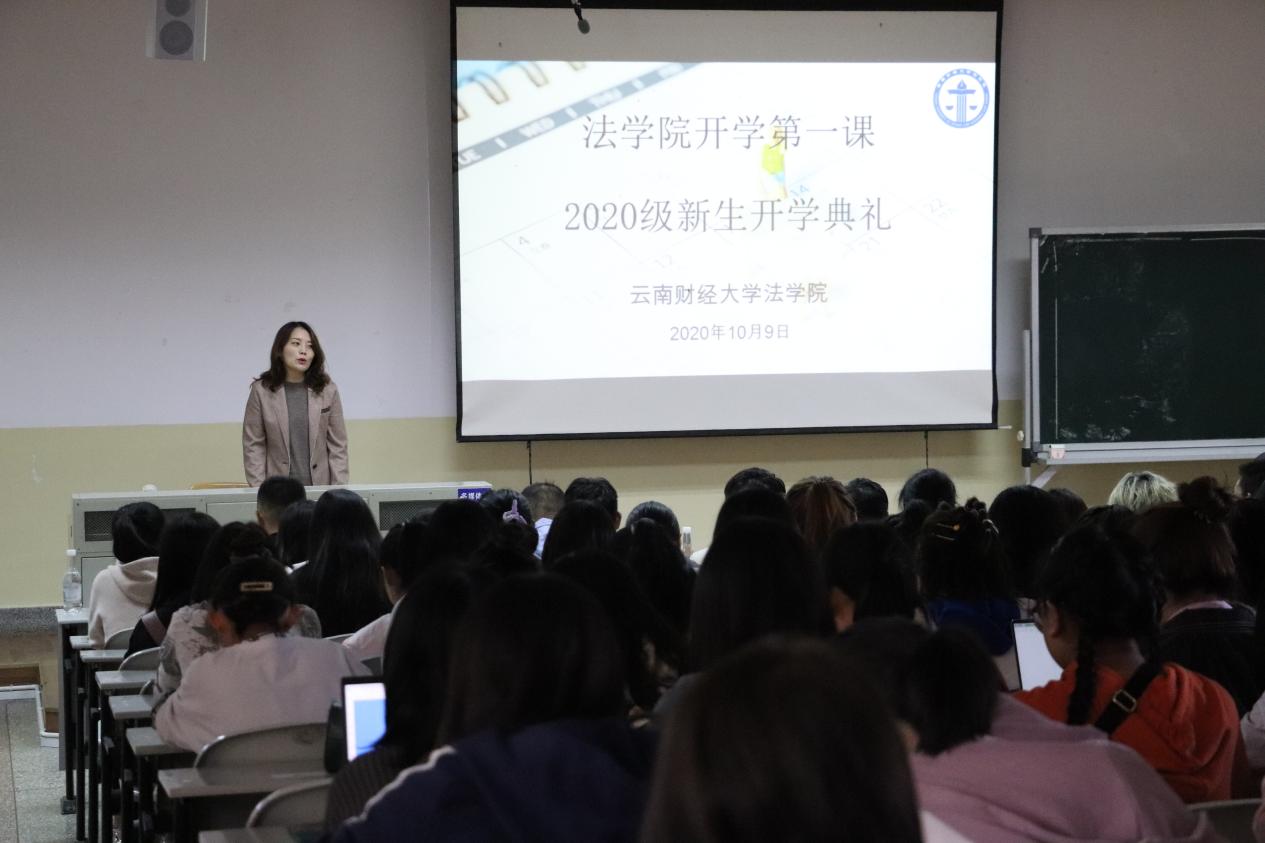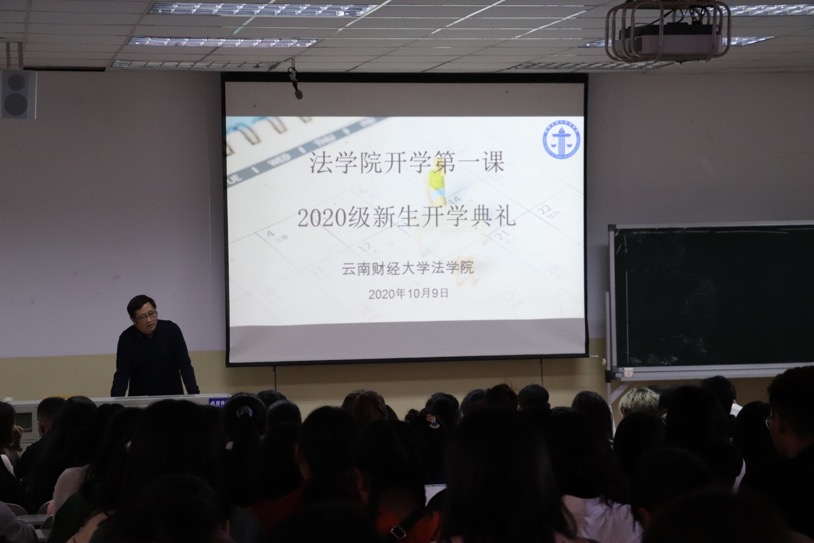 10月9日,为深入学习贯彻习近平新时代中国特色社会主义思想和党的十九大精神,培养中国特色社会主义事业建设者和接班人,同时为了让2020级同学更快融入校园,增强对学校、学院的归属感,法学院举办开学第一课系列活动之2020级新生开学典礼。法学院副院长石现明,法学院党委副书记兼纪委书记李姗姗,学院各教研室主任、教师代表,各科室负责人,各新生班班主任参加开学典礼,活动由法学院团委书记侯磊主持。