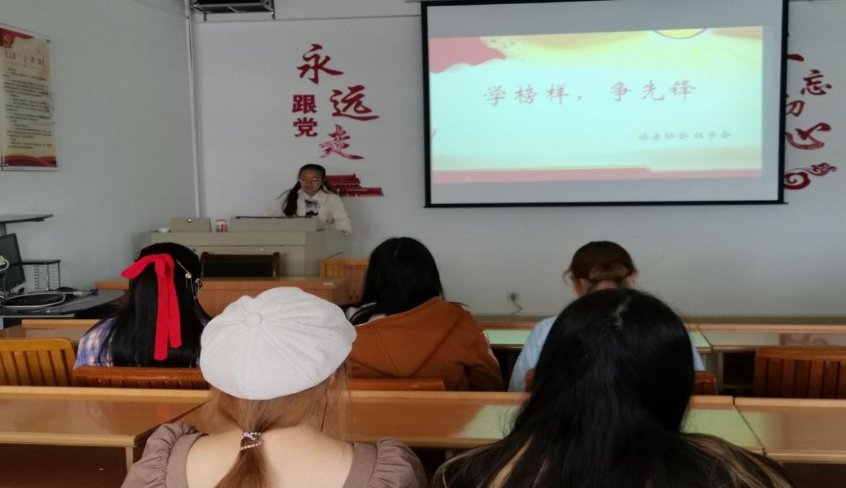 2020年10月25日,为响应党和国家要求青年“学榜样,争先锋”的号召,让社员们深刻学习理解爱国主义内涵,读者协会在博远楼305开展了“学榜样,争先锋”主题团日活动。