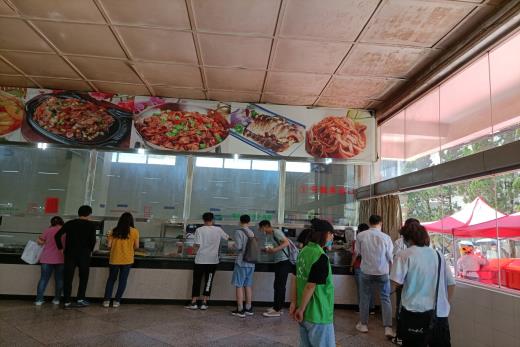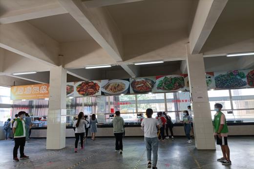 疫情特殊时期,同学们不能在食堂内就餐,食堂的秩序也就显得更为重要。活动过程中,志愿者在每一个打饭窗口旁边将同学们分为小组,让同学们有间隔、有秩序的排队打饭。服务过程中,还在食堂各个地方巡查,重点提醒同学们排队、有序打饭,同时注意脚下安全、防止滑倒。同时,对于过于拥挤的窗口进行人流疏散,避免过多人流聚集。