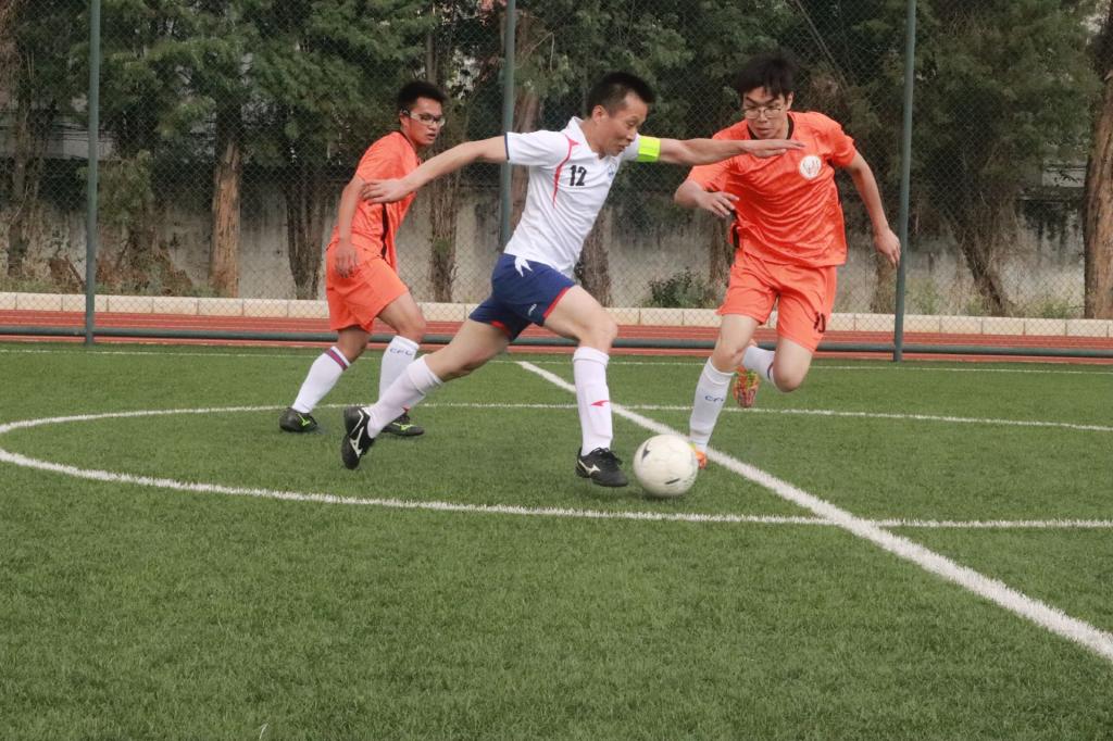 比赛开始之前,双方队员都早早到场进行热身锻炼,他们浑身上下都散发着斗志昂扬的气息,准备与对方好好战上一场。比赛正式开始,在上半场的比赛中,法学院男足配合有序,比赛节奏掌控的很好,每一位球员都拿出了自己最好的状态。每当对方进攻,足球靠近球门时,守门员都打起十二分的精神,拼尽自己全部力气去阻挡对方的球,每个人都在努力拼搏。