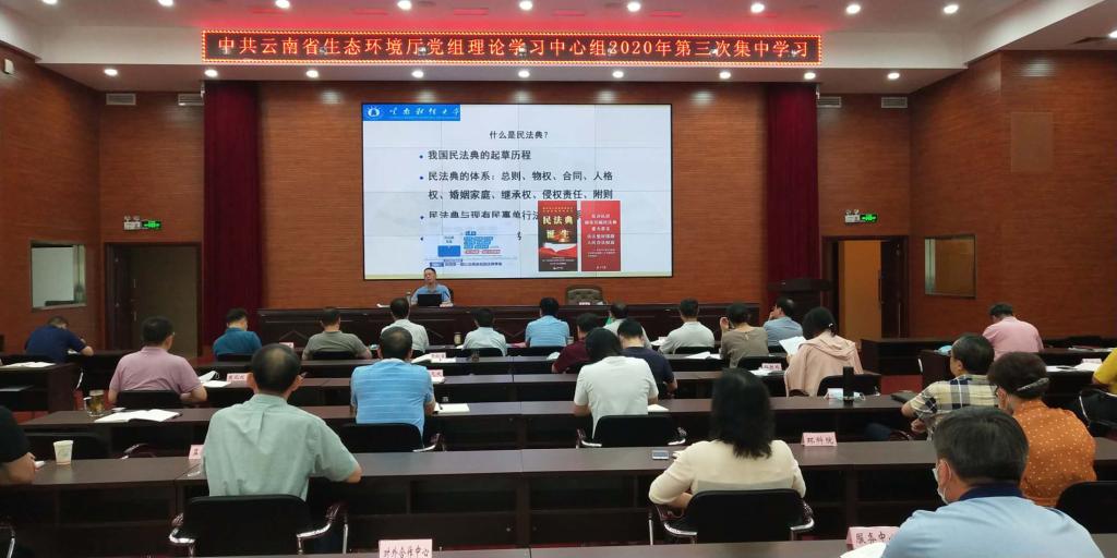 6月30日下午,云南省生态环境厅党组举行2020年理论学习中心组第三次集中学习,专题学习新颁布的《中华人民共和国民法典》。william威廉中文官网法学院于定明教授应邀作了专题辅导授课。厅领导、机关各处室主要负责人、直属各单位党政主要领导等参加学习。