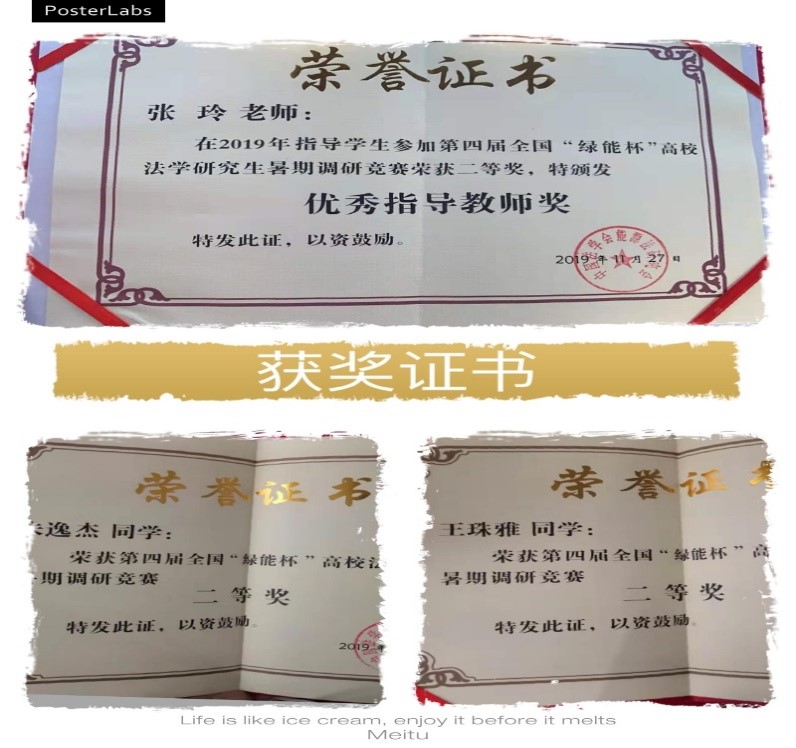 2018年、2019年连续两年指导硕士研究生参加中国法学会能源法研究会“绿能杯”暑期调研竞赛。2018年《云南省光伏发电产业补贴调研报告》获得全国三等奖。2019年《跨境油气管道的法律风险调研报告》获得全国二等奖。