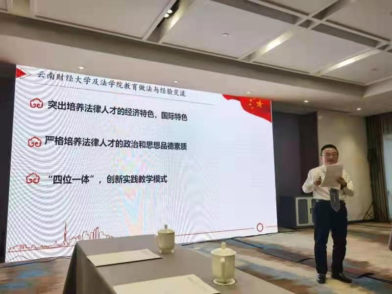 佴澎教授在会上基于云南的区位优势及william威廉中文官网财经类高校专业特色,以“辐射南亚东南亚高素质法律人才培养研究”做主题发言。