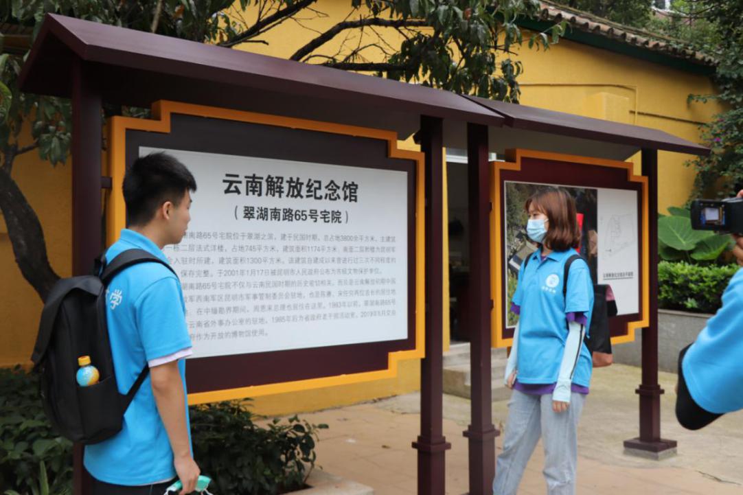 在参观完云南解放纪念馆之后,“三下乡”实践队的队员们来到了云南讲武堂。走进讲武堂,四周是当年的校舍,中间宽阔的练兵场上空无一人,游客熙熙攘攘,打破了院子里的寂静。之后队员们来到了卢汉公馆,卢汉公馆的地理位置在风景如画的昆明翠湖东南侧,绿树掩映着一幢别致的法式建筑,这就是著名的抗日爱国将领、云南起义的领导者、原云南省政协主席卢汉的住宅———翠湖南路4号卢汉新公馆。卢汉的这座公馆紧邻着他原来青莲街的旧公馆而建,故又称为卢汉新公馆。