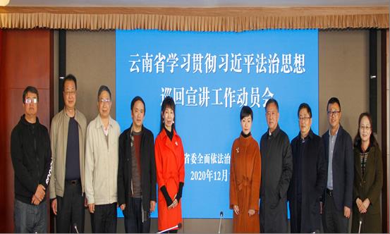 根据省委安排部署,中共云南省委全面依法治省委员会决定成立云南省学习贯彻习近平法治思想巡回宣讲团,自2020年12月中旬至2021年1月下旬赴全省各州市、各省级机关、企事业单位和大专院校巡回宣讲习近平法治思想。