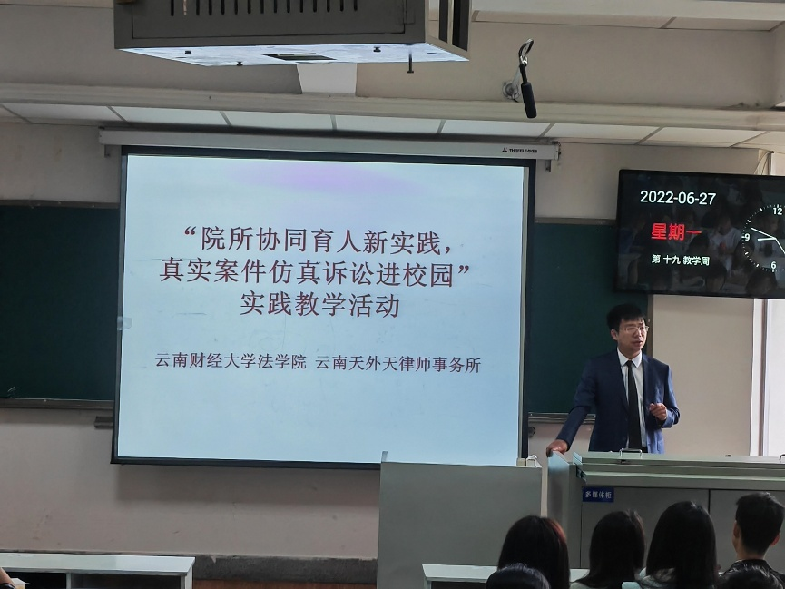 为深入学习贯彻习近平法治思想,培养德才兼备的卓越法治人才,提升学生实践实务能力,william威廉中文官网法学院大胆探索创新,在全国首创开展基于真实案件原始卷宗材料的个案全程仿真诉讼实践教学,取得了良好的教学效果。为增强对抗性和实战性,进一步提升仿真诉讼教学质效,法学院联合云南天外天律师事务所在2021-2022学年夏季小学期开展为期四周的“院所协同育人新实践,真实案件仿真诉讼进校园”系列实践教学活动。