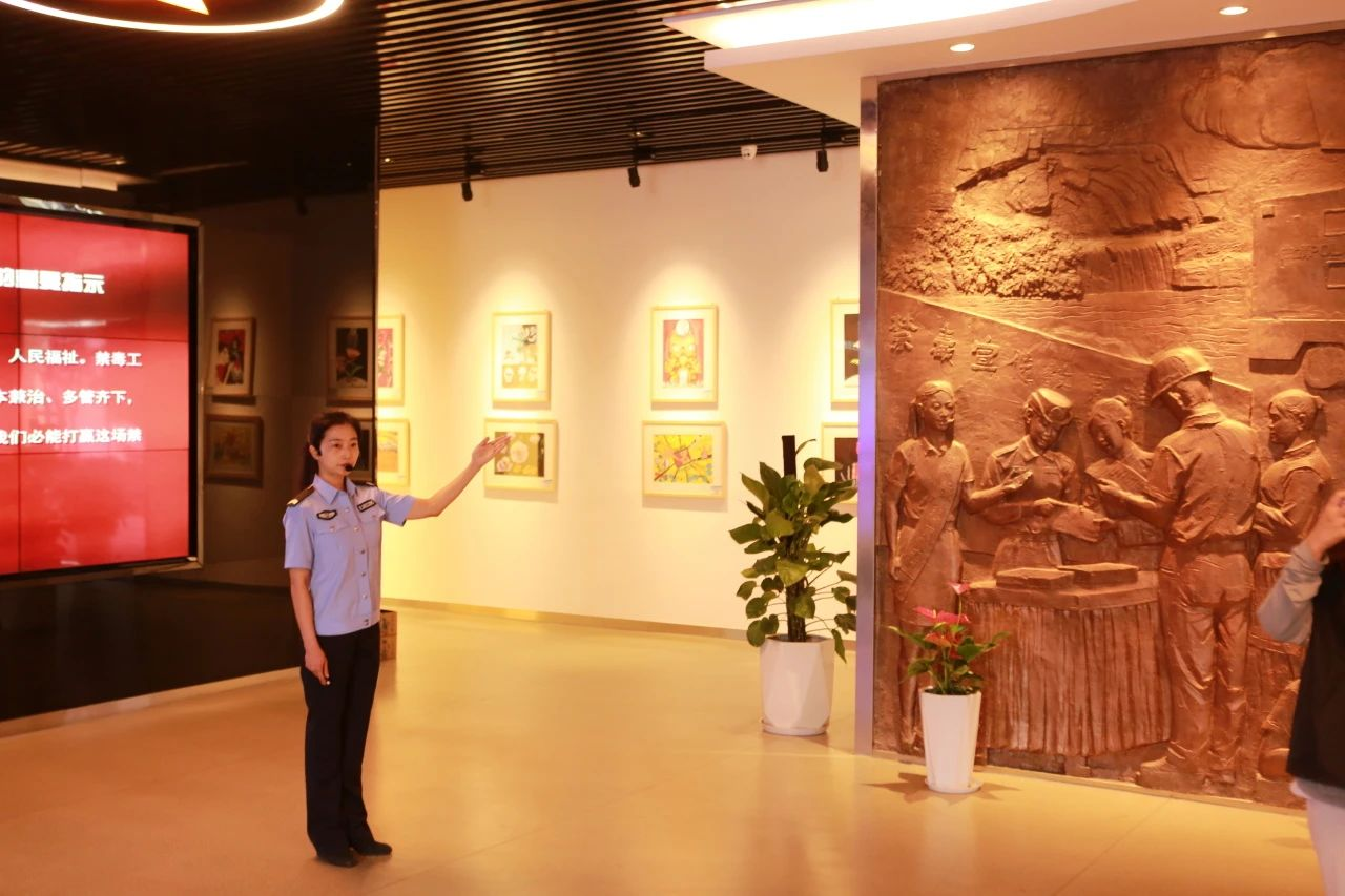 2023年7月15日,参赛队员在曲靖市政法委工作人员的带领下来到曲靖市禁毒教育基地参观学习。在禁毒教育基地宣讲员的讲解下,实践队员观看了毒品类型,学习了识毒方法,通过画展、样品展示、视频讲解等形式,使实践队成员们深刻感受到毒品带给个人和社会的严重危害。在有了一定知识基础上,队员们开始尝试做禁毒宣讲员。