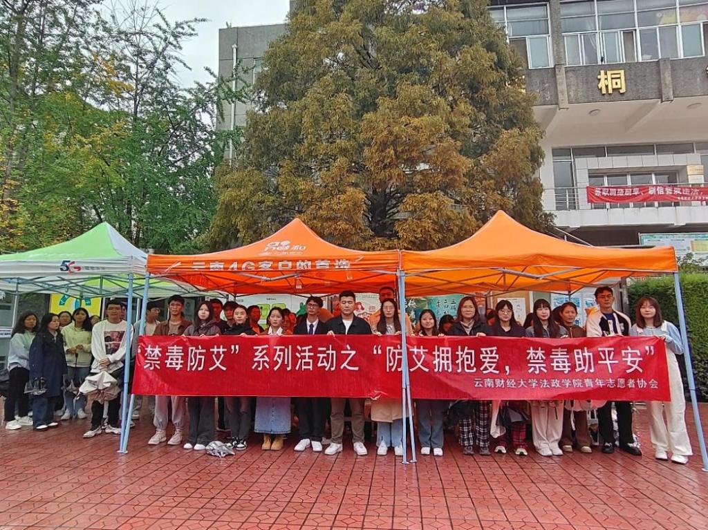 为建设和谐法治校园,增强同学们的拒毒意识和防范艾滋病意识。2023年10月13日,法政学院青年志愿者协会于梧桐餐厅前成功开展“防艾拥抱爱,禁毒助平安”禁毒防艾主题活动。
