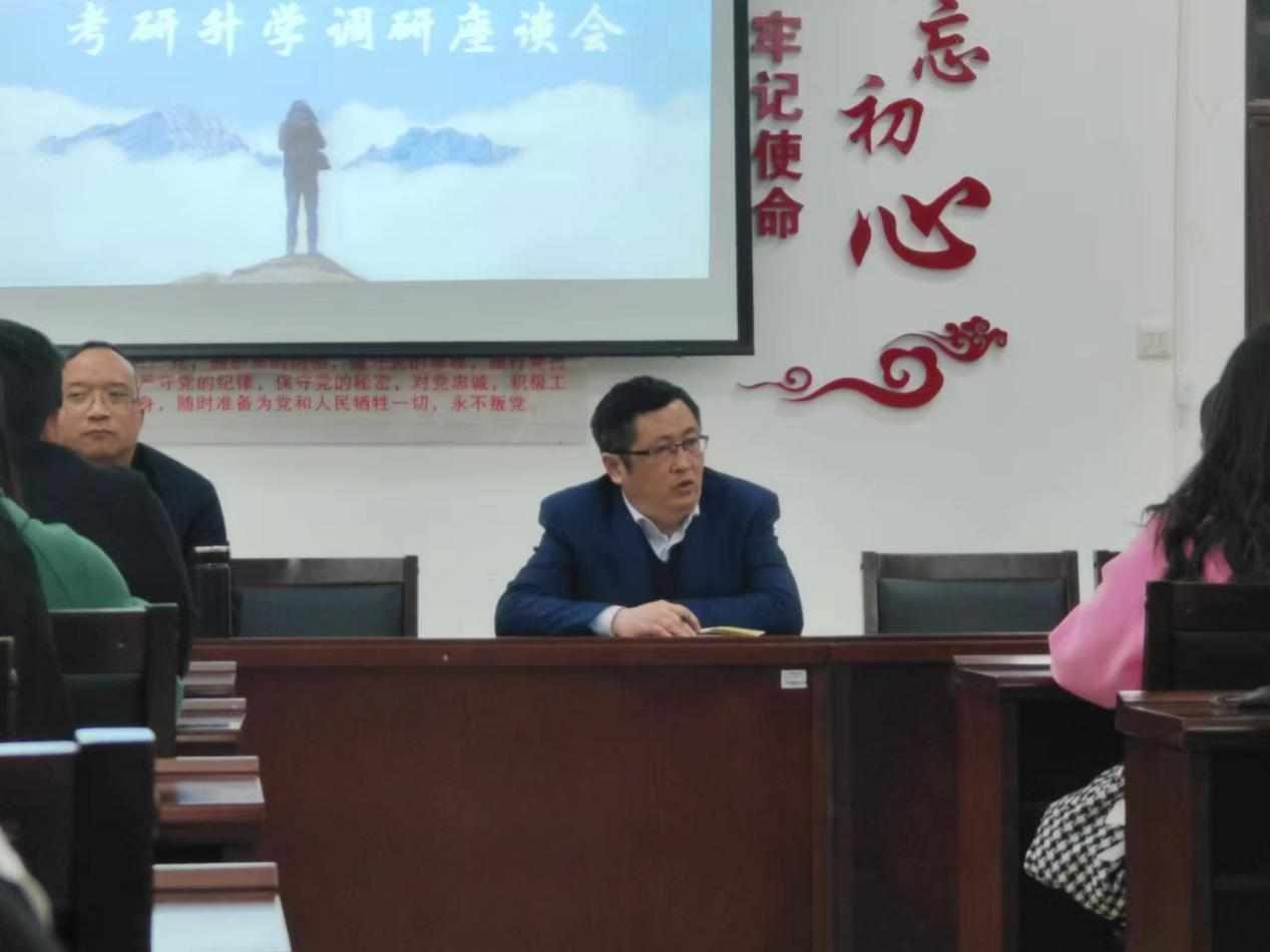为切实了解学生备战考研遇到的困难和问题,为学院制定考研帮扶措施提供决策参考,促进学生考研升学率进一步提升。 2023年3月6日19时,法政学院在博远楼305室召开考研学生代表调研座谈会。法政学院副院长石现明主持调研会,党委副书记王俊以及学院教务科、学生科负责人参加座谈会。