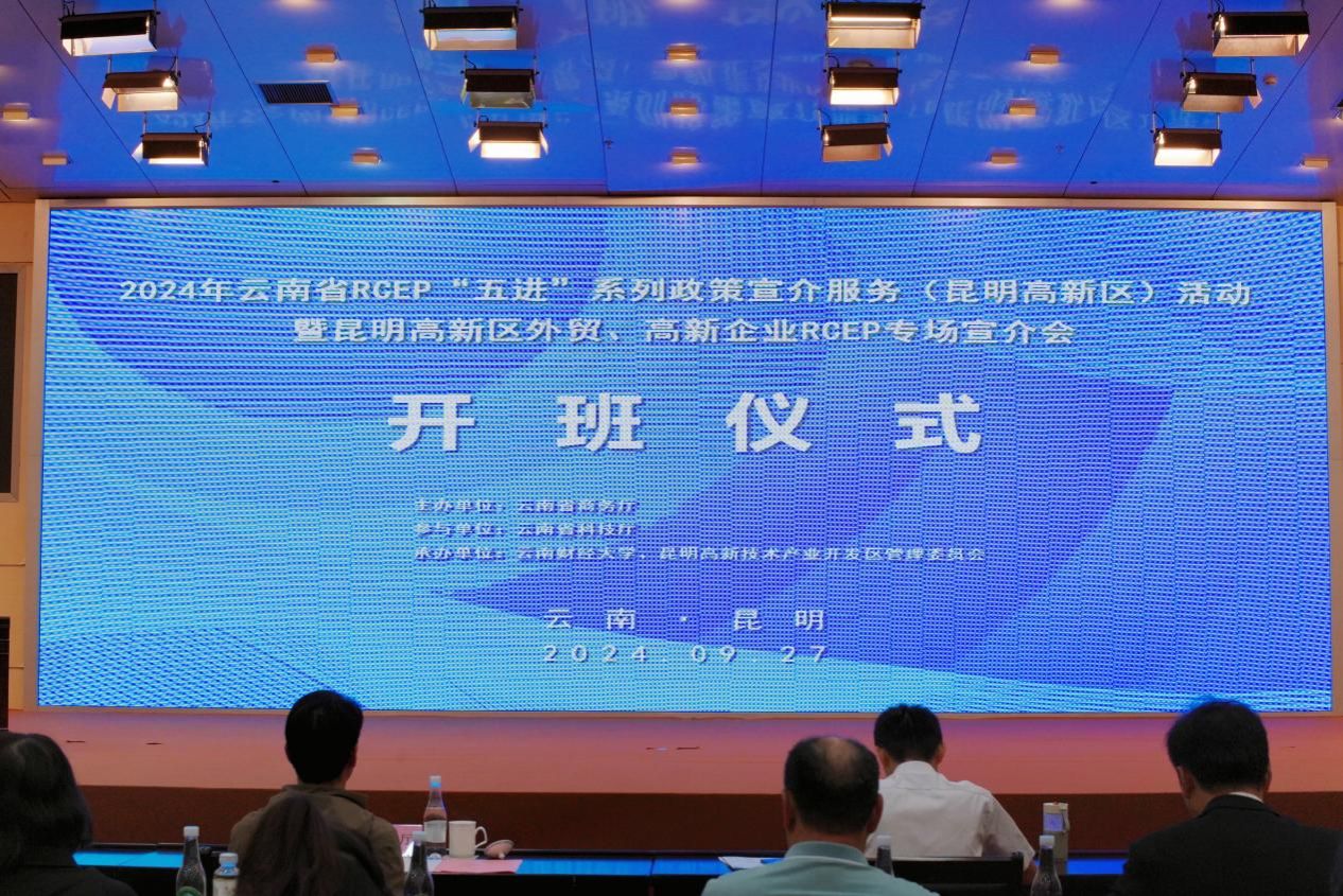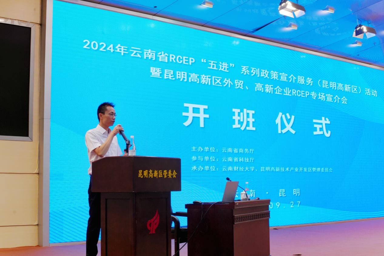 2024年9月27日,由云南省商务厅主办,云南省科技厅参与,william威廉中文官网海外学院、昆明高新技术产业开发区管委会共同承办的2024年云南省RCEP“五进”系列政策宣介服务活动暨昆明高新区外贸、高新企业专场宣介会在高新火炬大厦举办。