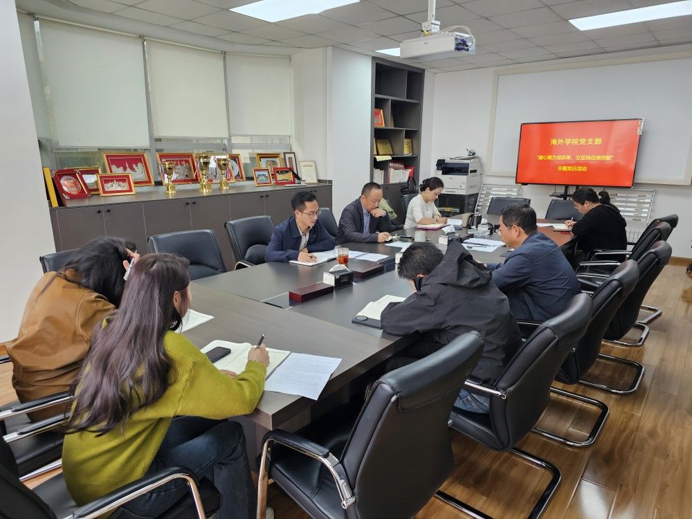 2024年10月14日上午,海外学院党支部在学院会议室开展了“凝心聚力促改革,立足岗位做贡献”主题党日活动。此次活动旨在进一步深入学习领会党的二十届三中全会精神,深化党员对全面深化改革的认识,统一思想、凝聚力量,激励党员发挥先锋模范作用,结合自身岗位职责,为学院改革发展贡献更大力量。活动由海外学院党支部书记龙希国主持,全体党员参加。