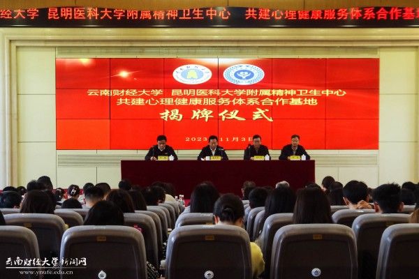 昆明医科大学附属精神卫生中心康复治疗中心主任合浩、中西医结合治疗科副主任胡怡、昆明市心理危机研究与干预中心助理研究员杨婷和实习研究员张艳玲参加揭牌仪式。活动由学生处处长沙磊主持。