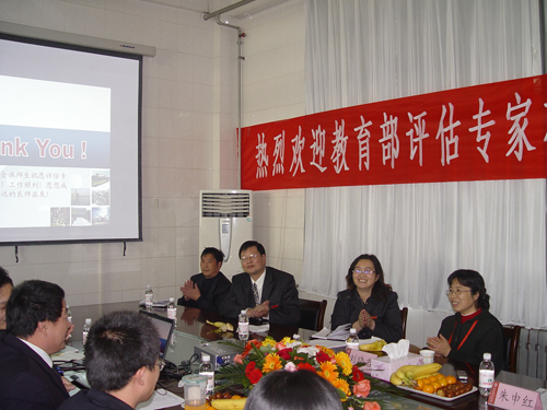 在商学院,院长杨荣本以“夯实基础、拓宽视野,培养应用型工商管理高级专门人才”为题,汇报了学院概况、本科教学的目标与措施、教育教学成就、评建工作和今后努力方向等内容。