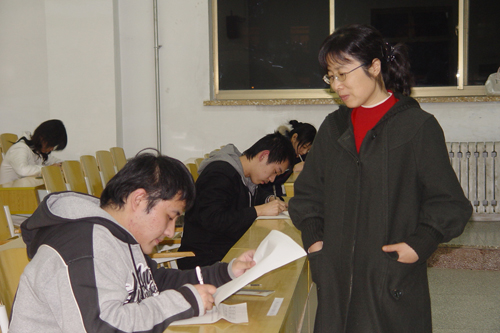 刘晓君教授在副校长李东的陪同下,对永利官网计算机学院05级的27名同学进行了英语技能测试,测试的主要内容为英译汉及英文写作。