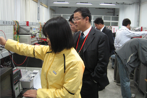 王晓明教授、刘晓君教授对学生进行电工电子、英语技能测试