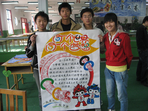 10日,艺术节第一个主题活动——以“同一个世界,同一个梦想”为主题的“奥运风”海报大赛圆满成功,来自各院系的20多支参赛队进行了现场才艺大比拼。