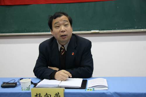 刚从济南学习归来的杨向荣副书记给同学们带来了对“十七大”重要精神最准确、最权威的理解。他首先赞扬和肯定了广大同学积极学习“十七大”重要精神的高涨热情和学生干部及先进代表紧密结合自身工作为学校“迎评创优”工作做出的贡献,同时对学生干部及先进代表提出了更高的要求,并指出学习“十七大”重要精神任重而道远。
