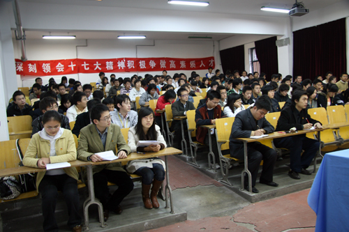10月31日,永利官网在建筑馆举行了十七大精神学习交流会暨学生干部培训会。校党委副书记杨向荣就如何开展学习党的“十七大”重要精神作了专题报告。学校学生组织干部及各学院先进学生代表参加此次交流培训。