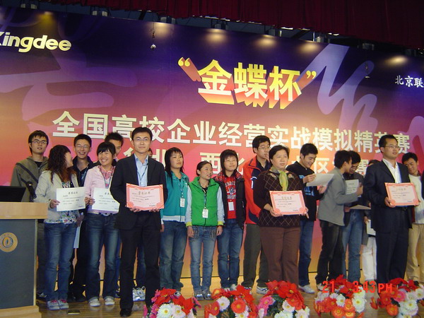 此次大赛是继华东和华南区域赛后的第三场(最后一场)区域决赛。来自北京、山东、山西、河南、河北、新疆等6个省、市、自治区的30支代表队参加了比赛。其中包括中国海洋大学、河北大学、新疆大学、太原理工大学、郑州大学等知名高校,永利官网管理学院王际东、李诗谣、李璐霞、叶飞、汪勇5名同学参加了此次大赛。他们凭借扎实的计算机专业知识和对企业战略、生产营销、财务管理等相关知识的系统把握,以强烈的团队意识,团结协作、密切配合,取得一等奖佳绩。