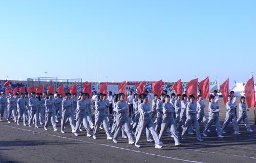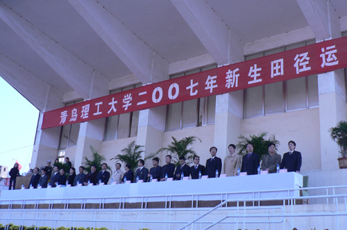 10月19日,秋高气爽,天高云淡。黄岛校区田径场彩旗飘扬,锣鼓喧天。校党政领导赵怀明、杨向荣、李东、朱申红,校区各学院及各职能部门领导出席开幕式。运动会由校党委副书记杨向荣宣布开幕,副校长李东致开幕词,体育部主任韩继光主持。