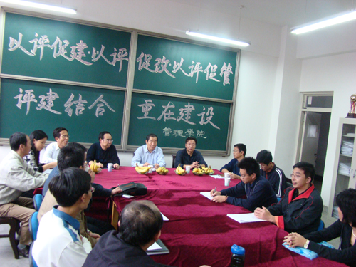 耿书记听取了商学院院长杨荣本和管理学院院长邵军义关于预评估工作的汇报,走访和查看了管理学院实验中心,对各学院预评估工作给予肯定,并对下一步工作做出指示,要求学院预评估准备工作对照评估指标体系,精益求精,细致到位。