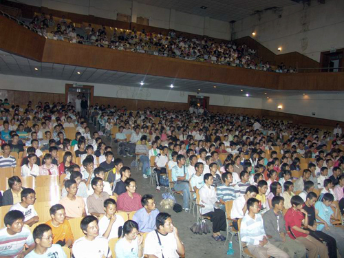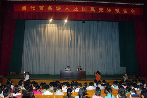 人文社科学院院长谭业庭、党总支书记陈稷玲、 副书记林桂梅、团总支书记申维东等领导老师、开发区宣传部副部长吴晓惠女士及开发区文学艺术联合会部分成员出席了报告会并在前排就座。中国石油大学、山东科技大学部分师生也来到报告会现场聆听了汪国真先生的精彩报告。报告会由人文社科学院院长谭业庭主持。