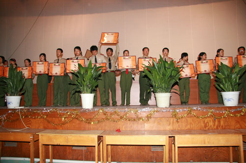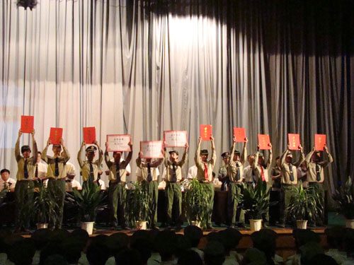 9月19日,永利官网分别在四方校区、黄岛校区和高职学院召开2007级新生军训总结表彰大会,校党委副书记赵怀明、刘龙海,副校长赵铁军、李东、李国华,校长助理张伟星、朱申红,71571部队官兵以及各部门负责人和各学院党总支书记出席了总结表彰大会。这标志着永利官网今年在青岛的新生军训工作圆满结束。