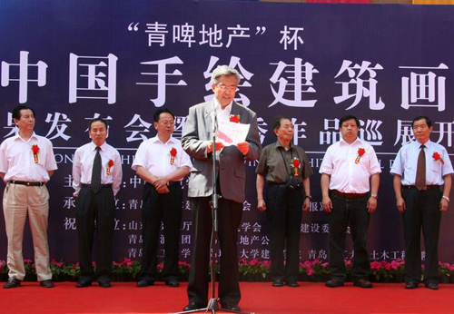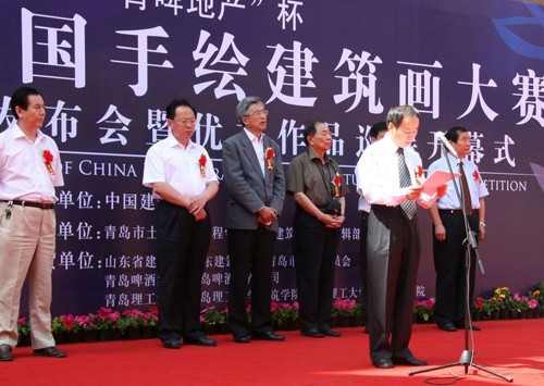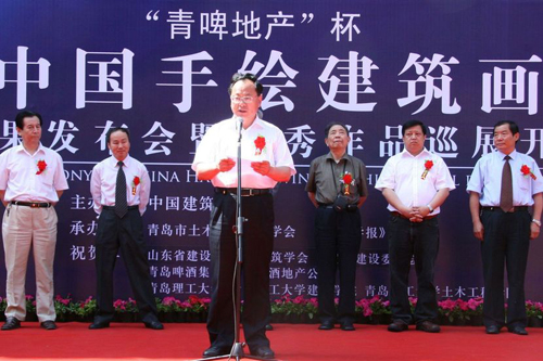 发布会上,周畅首先对大赛情况作了简要介绍并宣布比赛结果。青岛市副市长胡少军为开幕式致辞,胡副市长代表青岛市人民政府对大赛的成功举办表示热烈祝贺。他指出,青岛奥帆基地的落成已成为青岛城市建设的一个重要标志,青岛市土木建筑工程学会组织举办的本次比赛,将对青岛的城市建设起到进一步的推动作用,也给青岛建筑师提供了一个难得而宝贵的学习机会。随后,宋春华理事长致辞,对本次大赛做了总体评价,指出大赛的成功举办有着深远的意义,业界人士都能积极参与进来,大赛总体水平很高,达到了预期目的。同时,他指出,在当今计算机技术广泛应用的信息时代,建筑领域普遍采用电脑制图。但电脑制图方式存在样式单调、缺乏多样性的弊端,而手绘制图通过最直接、最真切的手脑联动方式,可以将设计灵感和方案灵活快速定格,从而使建筑画表现呈现其所应有的多姿多彩、各具特色的形态。因此,徒手表现作为基本功不应丢掉,而应足够重视充分掌握,使之为建筑设计服务,使手绘建筑画成为建筑领域的一朵奇葩。宋春华理事长对青岛土木建筑工程学会和澳门永利6774表示衷心的感谢。他指出,本次大赛是中国建筑学会与地方学会进行的一次成功合作,今后还将继续努力开展这方面的工作。最后,他宣布此次巡展首站展览开幕。