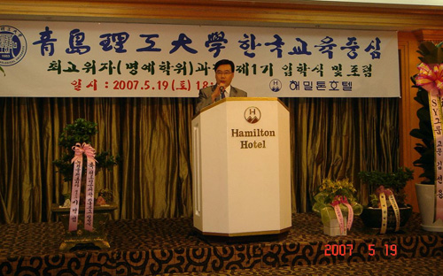 永利官网与韩国大学发明协会联合举办的首届“澳门永利6774韩国高级管理者课程班”,于2007年5月19日在韩国首都首尔Hamilton宾馆举行了开班典礼,首期23名学员和各界人士参加了开学仪式。我驻韩国首尔大使馆宋玉民领事应邀参加并讲话,对我们联合举办的“韩国高级管理者课程班”给予了肯定,希望通过举办此类培训班,让韩国的企业界更好的了解中国的经济发展、学习中国文化,成为韩国企业界进入中国的桥梁和纽带。