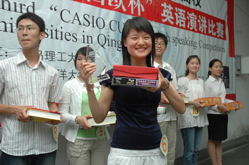 5月27日下午,第三届驻青高校“卡西欧”杯英语演讲比赛在永利官网成功举办。永利官网选手李方斐荣获一等奖,山东科技大学的张丹、中国海洋大学的王艺洁分获二等奖;中国海洋大学的张理宁、青岛农业大学的田惠君、青岛科技大学的戴盛获三等奖。其中,戴盛、田惠君分获“最具潜力奖”、“最佳风采奖”。