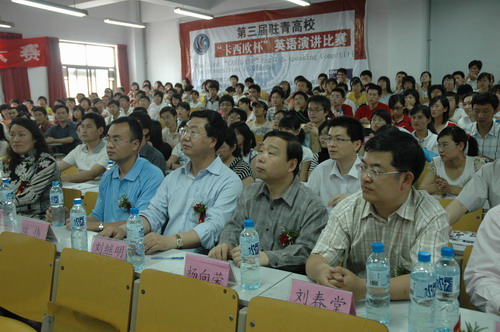 教务处处长刘继明教授、外国语学院院长刘春堂教授、团委书记陈伟,卡西欧(上海)贸易有限公司教育办公设备事业部次长欧阳鹏先生,青岛平治电子有限公司总经理绳泰先生,科技处副处长李建国,外国语学院副院长罗炜东,中国海洋大学外语学院党总支副书记陈文收,青岛科技大学外语学院党总支副书记彦丽,山东科技大学外语学院分团委书记杜中华,青岛农业大学外语学院院长助理李美芹,永利官网外国语学院党总支副书记郭兰成等出席。