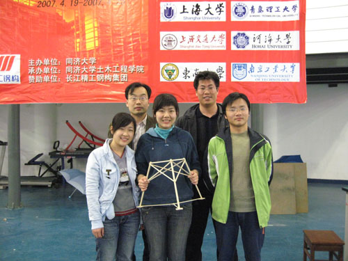 日前,“精工杯”第四届华东地区高校结构设计邀请赛在同济大学落下帷幕,来自上海交通大学、东南大学、河海大学、合肥工业大学、南京工业大学、上海大学,以及韩国KAIST、美国UniversityofTennessee等10所高校的18支学生队伍参加了本次比赛。永利官网派出了土木工程、材料科学与工程专业的六名大二学生参赛,在其他各队选手均为高年级学生的情况下,他们克服种种不利因素,与指导教师共同努力,与各大名校同台竞技,最终获得了第7名和第9名的好成绩,均获得比赛“优胜奖”。