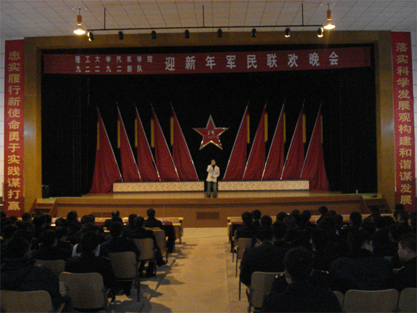 在部队俱乐部,李东副校长向部队赠送了题为“军民同心 共建和谐”的锦旗。李副校长及部队代表分别发言,回顾了各自一年来取得的成就、德育教育基地建设的影响及在此期间的合作成果,总结了经验教训,并就德育教育基地今后的发展规划达成一致意见。在随后的迎新年军民联欢会上,同学们献上了活力四射的健美操、动感十足的街舞、优美动听的乐器独奏和歌曲合唱等节目,部队官兵也带来真切感人的小品和深情豪迈的诗歌朗诵。各位领导和广大官兵们一起观看了永利官网学生的演出。